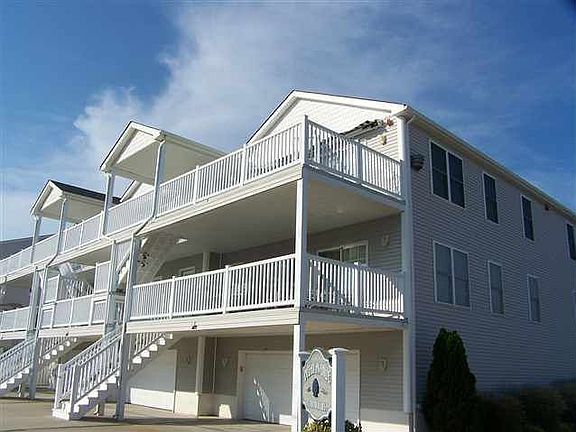 Fantastic Location!! This beautiful top floor condo is located just 1 short block to the beach in a highly sought after section of North Wildwood. This is a corner unit (Ocean corner) with plenty of natural light. As you enter the condo you will find an open floor plan with a family room that has a gas fireplace, cathedral ceiling & sliders that lead to your large private deck with beautiful OCEAN VIEWS! Also a spacious dining area and kitchen that features a large peninsula w/ stools for an additional entertaining area. The back half of the condo offers a total of 3 spacious bedroom, 2 full bathrooms and a laundry room. The master bedroom boast a walk in closet, upgraded tiled shower w/ glass doors and a private deck with fantastic OCEAN VIEWS! The ground floor amenities include a large 2 car garage, an additional storage room, well maintained grounds & an enclosed outside shower. This condo is a must see!