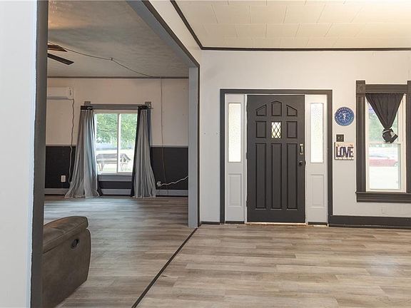 This large home has a ton of potential. Nice wrap around porch. Large open living and dining room with new flooring. A flex space is off of the kitchen. Main floor master with a fireplace and a full bath downstairs. 3 large bedrooms upstairs with a large bathroom that has a new tub. The home has central heating and 5 split units for AC/heat. All of the windows have recently been replaced. Home is located on a corner lot that is situated nicely within walking distance to both grade school and high school. Nice covered patio in the backyard. This home comes with two storage sheds. Sellers are HIGHLY motivated so bring your offers!