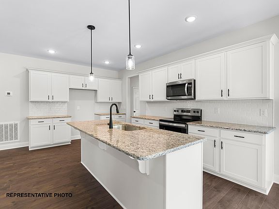 Fall in love with this Kenly floor plan in the beautiful Maggie Way community! First floor main suite with ceiling fan, large WIC, double sink vanity & 5ft shower. Kitchen showcases gorgeous cabinets, granite countertops, tile backsplash, stainless steel appliances & island w/seating. Additional features include living room with cozy fireplace, large bonus room, plus unfinished storage area! Large lot, low HOA dues and no city taxes! Photos of similar homes and cut sheets are for representation only and may include options, upgrades or elevations not included in this home.