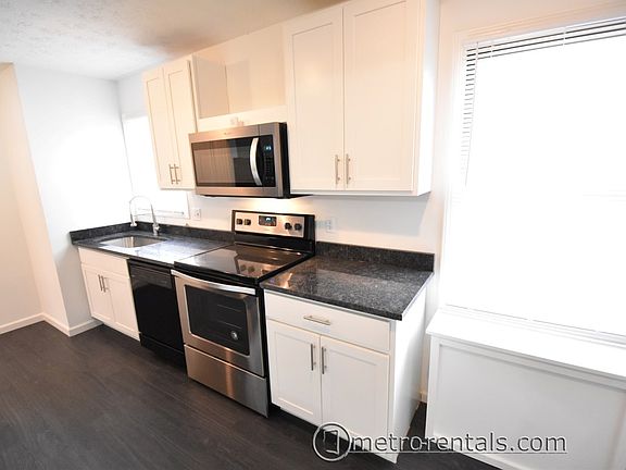 Recently updated 1st floor one bedroom apartment for lease in Merion Village close to German Village. Open concept living room into kitchen floor plan. All new kitchen cabinets and granite countertops with eat in island. Washer and Dryer located in the unit. Hard surface vinyl flooring through out. All electric unit with through the wall AC and baseboard heat. Privacy fenced back yard with off street parking. Renter responsible for electric, water & sewer.