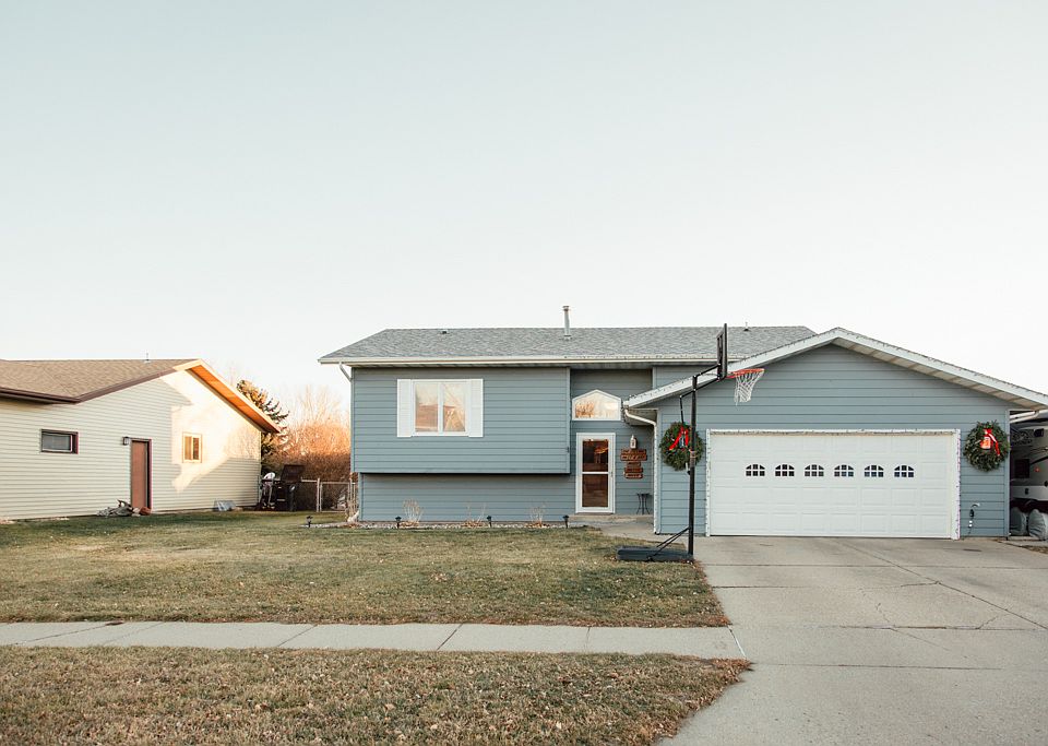 Don't miss out on this inviting property in South Bismarck! Walking you will be greeted by a large living room, that opens up to the dining and updated kitchen featuring Dura-ceramic flooring! The dining room gives access to the backyard with a sliding door that overlooks the 15'X20' MAINTENANCE FREE deck! There are two bedrooms on the upper level and updated full bathroom. The Master bedroom features TWO closets! Downstairs you will find a large/family/rec room, large bedroom and bathroom. There is ample storage within the laundry/mechanical room. The water heater was replaced in September 2017. There is an attached, double stall garage that is fully finished & heated! The yard is fully fenced & features a yard shed! This home is a great value for the price, call your favorite agent to view today!