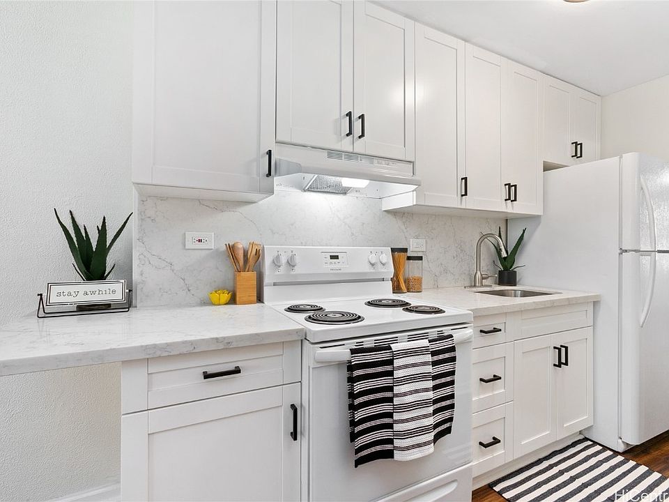 Newly renovated 1-bedroom in the beautiful Kalia. Unit features luxury vinyl flooring throughout, enclosed lanai increasing bedroom size, no popcorn ceiling in the living/kitchen/bathroom, new kitchen cabinets & quartz countertops, new bathroom vanity & great cross breezes! Step off the busy streets and into the lush peaceful paradise that is "Kalia". Desirable and convenient location between Ala Moana and the heart Waikiki. Kalia is gated, secure, well maintained and beautifully landscaped with lush greenery & tall coconut trees. Amenities include a heated salt water pool, BBQ area, library, storage unit, sundeck, on-site security, office & resident manager, gated entries, keyed elevators and much more. The "food pantry", breakfast hotspot "Aloha Kitchen" and more shops & eateries across the street. Blocks from renowned beaches & shopping. Parking stall for rent through Kalia and other nearby facilities. Street & public parking garages nearby. Long lease that expires in 2048. Maintenance fee INCLUDES electricity, sewer, water, hot water, cable TV and internet. Other fee includes Property Tax-$87, Cable Tv-$53.61