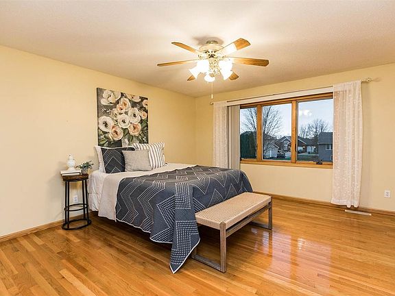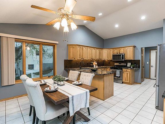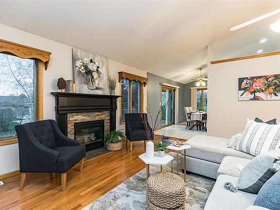You'll love this home located in a quiet, well-kept neighborhood with neighbors that make the sellers feel it's worth a million! The spacious living room features vaulted ceilings, hardwood floors, and a cozy gas fireplace. The hardwood floors continue down the hall and into the primary bedroom with bathroom ensuite, featuring a jetted tub and walk-in shower. The walk-in closet offers space for clothes for every season. Two additional bedrooms and full bathroom are situated by the primary bedroom. Enjoy cooking together as a family in the large kitchen with a designated dining space that leads out to the maintenance-free deck; perfect for enjoying summer nights in the large fenced yard. Rounding out the main level is the bright laundry room adjacent to the entrance from the 3-car garage into the kitchen. The walk-out basement offers is a huge rec room with additional fireplace, dry bar, full bathroom, and tons of storage!