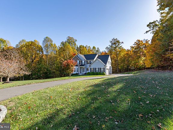 Tucked amid three wooded acres, this Stafford retreat blends natural beauty with thoughtful updates and an abundance of space! 425 Gentle Breeze Circle truly balances the absolute best of our region - privacy and convenience! This 5-bedroom, 3.5-bath home spans nearly 4,900 finished square feet across three finished levels. The layout offers flexibility for daily life, entertaining and work-from-home living... all surrounded by the most peaceful of scenery. Set in The Willows community off Truslow Road, residents enjoy large homesites of three-plus acres, wooded surroundings and a close-knit neighborhood vibe. The low quarterly HOA fee maintains shared spaces and even includes seasonal traditions like a neighborhood hayride around Halloween. The property’s long asphalt driveway winds past maple, cherry and crepe myrtle trees to a side-loading two-car garage complete with a sink. The treed lot provides both open grassy areas and wooded privacy with plenty of space for recreation. Recent exterior updates add peace of mind: a new roof installed in 2021 with a 50-year warranty, fresh driveway and sidewalk, repainted shutters and upgraded oversized gutters, downspouts and leaf screens. The pale gray siding and red front door add that much more timeless charm to the curb appeal. Inside, a hardwood foyer welcomes you into a bright main level with a flexible office or living room to the right and a great room featuring built-in shelving and a gas fireplace. Inside, there is brand new carpet throughout and the home is beautifully filled with natural light! The spacious kitchen includes granite countertops, 42-inch oak cabinets, recessed lighting, an oversized island with cooktop and a sunroom large enough for an eight-person dining table surrounded by windows. Upstairs, the primary suite impresses with dual walk-in closets, a tray ceiling and a bath with soaking tub, separate shower, dual sinks and a private water closet. Three secondary bedrooms and a full bath complete the level along with a tiled laundry room featuring a sink and ample storage. The fully finished walkout basement adds even more flexibility with a private bedroom, full bath and multiple open areas ideal for a gym, office or media room. The home’s systems have been thoroughly updated, including dual HVAC systems, dual water heaters, a new furnace, and a transferable maintenance plan good for upcoming tune-ups through 2026. Every room features a ceiling fan, and the garage, utility room and crawl space add excellent storage options. Located within 10 minutes of Route 17 conveniences and 15 minutes of I-95 access via Centreport Parkway or Route 17, the home is ideally positioned for both commuters and locals. In 2026, a new middle and high school are also scheduled to open - within 5 minutes of the home! With its serene setting, generous layout and extensive list of updates - 425 Gentle Breeze Circle offers the perfect blend of comfort, space and enduring value in one of Stafford County's most sought after neighborhoods!