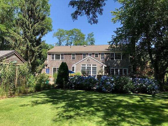 Thoughtfully custom built by the current owner, this 3 bedroom, 3 1/2 bath home located about 1 tenth of a mile to Great Pond and 1 mile to Cape Cod Bay is appointed with wonderful detail inside and out. Hickory flooring, stone fireplace and chefs kitchen with granite counter tops. Central A/C, radiant heat all surrounded by amazing gardens, walkways and perennials. This home has everything you need, first floor master suite with jacuzzi tub, first floor laundry, and a 2 car garage with additional unfinished space above. The exterior boasts a screened outbuilding with a bar, composite decking, stone patio, fire pit, outdoor shower, and fully irrigated grounds. A truly special setting.
