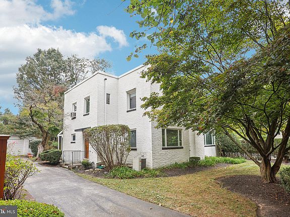 Welcome to this architecturally distinctive, modern home situated on a serene corner of a quiet, tree-lined street in Narberth Borough. Originally designed as a twin, it has been combined into a more expansive single residence. The first floor offers two entrances, each leading to a vestibule with coat closet. On one side find a spacious living room which flows into the dining room and opens out to a large deck, ideal for outdoor gatherings, BBQs, or tranquil evenings under the stars. The kitchen is adjacent to the dining room, allowing for easy access to the deck when entertaining. On the opposite side the vestibule leads to the family room and a convenient first-floor bedroom with ensuite bathroom and adjacent laundry room. The laundry area provides access to a screened-in deck to enjoy. Original hardwood floors run throughout this level. Upstairs, you’ll find four nicely-sized bedrooms, all with closet space and hardwood flooring. Two full baths on this level offer extra convenience. The expansive basement level provides excellent storage options and includes a half bath, and an exterior door. Transformation into a rec room, home gym, or workshop are all possibilities. With two garages and driveways, parking and additional storage space are plentiful. The yard is a delightful oasis, perfect for relaxing, entertaining or even a bit of bird watching. Tucked away on a cul-de-sac, yet just blocks from Narberth’s vibrant town center—featuring charming shops, popular dining spots, the Narberth Movie Theater and brand new Jeni's Ice Cream parlor—this home delivers both a wonderful location and true convenience. Narberth’s parks, library, playground, and multiple markets are nearby. Located in the highly-rated Lower Merion School District, Blue Ribbon Award-winning Merion Elementary School is just steps away. The Narberth train station and close-by major transit routes allow for quick access to Philadelphia and the western Main Line. This home radiates potential, and is a special find. Take this opportunity to bring your imagination and create your very own dream home in Narberth!