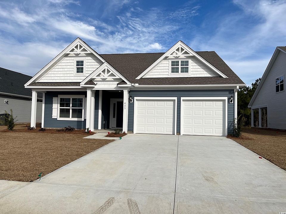 Located on a beautiful natural setting lot in Evans Park a natural gas community within Murrells Inlet. The Edgewood is a one-story, Craftsman-style home that features three bedrooms and two baths. The kitchen includes a large island with bar top, which is open to the dining area and family room, and a large pantry. The primary suite features a large walk-in closet. This split plan features the secondary & third bedrooms located toward the front of the home & primary suite in the rear. Options include an outdoor fireplace, walk-in shower in the primary bath, and 2 guest bedrooms or home office space. Photos for Illustration - colors, features & options will vary, this home is under construction. Close to everything including, roadways, beaches, entertainment, restaurants, shops & all that the south strand has to offer!