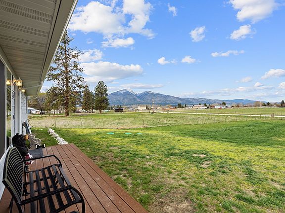 This 3 bed 2 bath home sits on 1.3 acres in the beautiful Bitterroot valley and includes an attached 2 car garage. When you enter the home you are greeted by the large living room on your left. On the right is the hallway that leads to the 2 bedrooms, full bathroom, and owner's suite with its own full bathroom. Straight ahead is the dining room with sliding glass doors to the back patio where you can take in the incredible views. Through the dining room is the kitchen with custom hickory cabinets, and laundry room with entry to the garage. You'll be comfortable inside year around with this home's 3 heat sources and central air. Close to Florence blue ribbon fishing access and Lee Metcalf Wildlife refuge. For more info call Jason Baker at 406-552-4111 or your real estate professional.