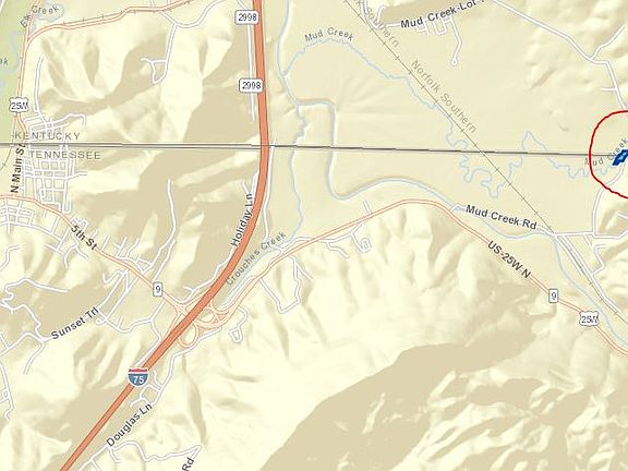 This is vacant land located on the TN side of the TN KY border. The parcel number is 005 024.00. This property has a continuous creek that runs through the property. About 7 minutes from interstate 75. You can drive by and view at any time. It is slightly wooded but could be cleared in a weekend with a few people.