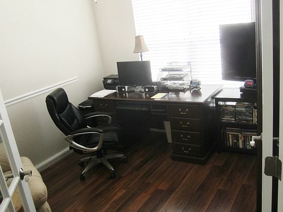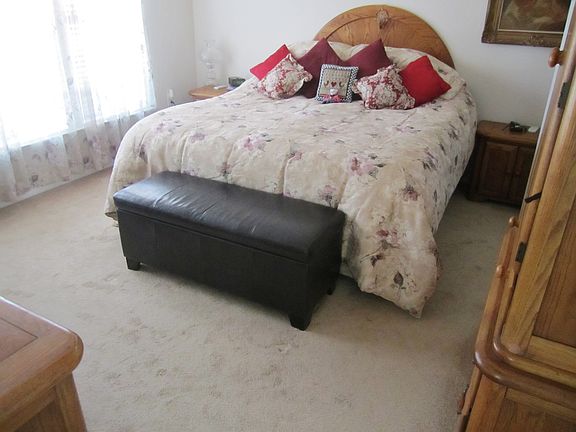2 bedrooms, 2 bathrooms, sun room, den, great room with dining room area, kitchen with eat in area, store room over garage with stairs, 2 car garage, security system with video cam. Wood floors in living area, granite counter tops in kitchen and bathrooms. Tiles in bathrooms, carpet in bedrooms.