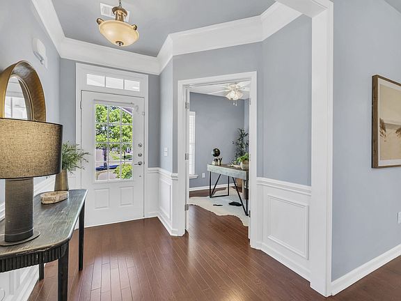 Wonderfully well maintained 55+ Lake Providence home is move in ready with thoughtful updates like; new hot water heater, shower handrails, and a fresh coat of paint inside and out. Single story floorplan with 2 bedrooms, plus separate office, hardwood flooring, tile in bathrooms and sunroom, granite counters, stainless steel appliances, and extra large closet in owner's suite. The beautifully finished, heated & cooled sunroom leads to your private back patio oasis with the bonus of a SunSetter retractable awning for extra outdoor comfort. Gated Lake Providence is vibrant with walking trails, activities at the club house, pickleball, tennis courts, pool, and fitness center. The location is the perfect blend of warm neighborhood feel, with the convenience of shopping and restaurants nearby. Visit today and fall in love!