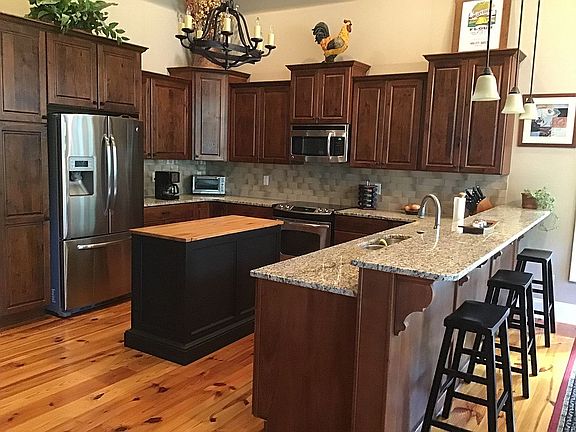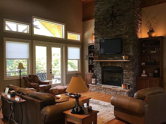 Beautiful 3 Bedroom, 2.5 Bath Home built in 2011 on Private Lake Cherokee. Spacious open floor plan featuring 10 ft. to 14 ft. ceilings on main level with vaulted wooden ceilings in the Great Room and covered back porch. Large master bedroom and bath with walk-in closet. Well-appointed Kitchen with stainless steel appliances. Home has oversized two car garage leading in to a sizable mudroom. Walk out finished basement features 10 ft. ceilings with a large rec room, two bedrooms and full bath. The home has ample covered and open porches on the lower level along with a fire pit area that extends the outdoor living area. There is also a shop/craft room which can easily convert to another bedroom or additional living space. The beautifully landscaped yard with 118 ft. of lake front has deep water, a boat dock and covered slip and lift. This private lake, bordering the Sumter National Forest along the escarpment of the Blue Ridge Mountains offers great fishing, boating, swimming and water sports. Truly ideal for full time or getaway living. One time $2000 initiation fee and $500 a year annual HOA.