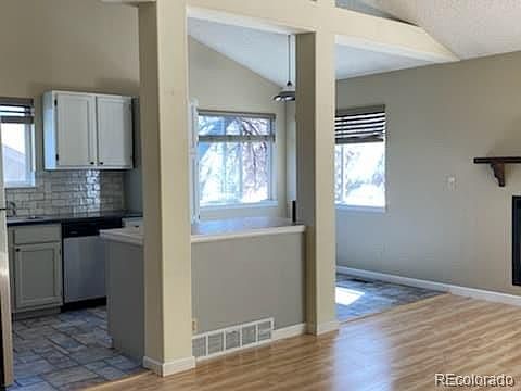 One level living with the open floor plan! Vaulted ceilings bring light throughout this 3 bedroom home, with a 2 car garage. The main living area includes a large living room with a fire place, open to the dining room and the kitchen. The back is fully landscaped. Give us a call, to set up a showing today.