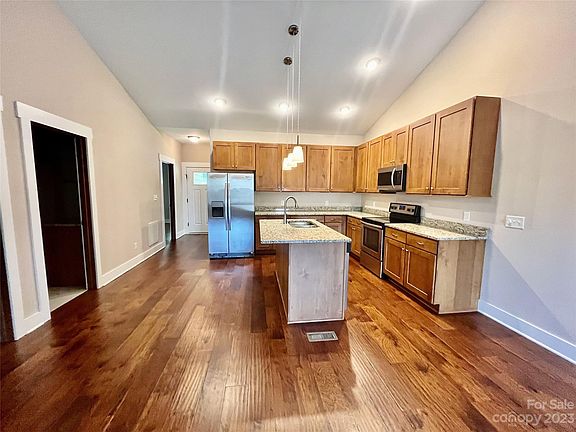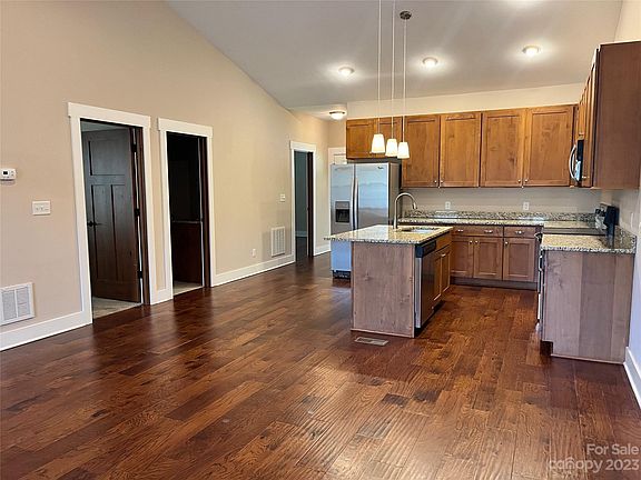 Like new townhouse, all on one level, open floor plan, kitchen w/island, huge vaulted ceilings, covered front and back porch, close to Downtown Black Mountain, all appliances stay.