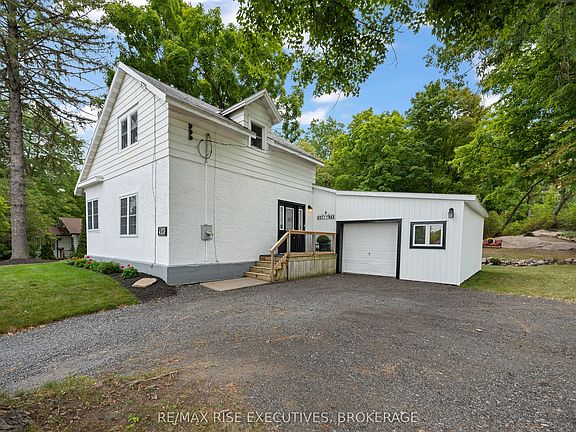 Discover this super well-cared-for 2-bedroom, 1.5 bath, 2-storey house in charming Gananoque, Ontario. This fully renovated home boasts a detached garage and beautifully maintained grounds, showcasing evident pride of ownership. Having been meticulously kept by the same family for many years, this property offers a move-in-ready experience. Step inside to an open-concept living area, bathed in natural light from abundant windows and accented with elegant trim work throughout. The recently upgraded kitchen is a chef's delight, featuring ample counter space, new white cabinets, and convenient access to the newly renovated deck. The main floor is completed by a brand new 4-piece bathroom and practical laundry facilities. Upstairs, you'll find two comfortable bedrooms, including a primary bedroom with a private 2-piece ensuite bathroom. The home's exterior features a crisp white stucco finish, complementing the absolutely stunning yard adorned with beautiful perennial gardens and a spacious back deck, perfect for outdoor entertaining, accessible directly from the kitchen. The lower level remains unfinished, offering excellent potential for storage. Attached garage, spacious enough for one car and additional equipment. Located just minutes from downtown Gananoque, the heart of the 1000 Islands, with its vibrant dining and boating community + 3 mins to Grass Creek Park Beach and the Gananoque Golf Club. Properties this well-maintained are a rare find - truly a testament to enduring care.