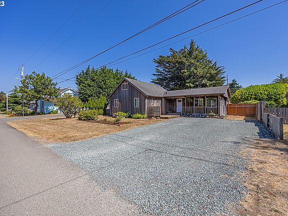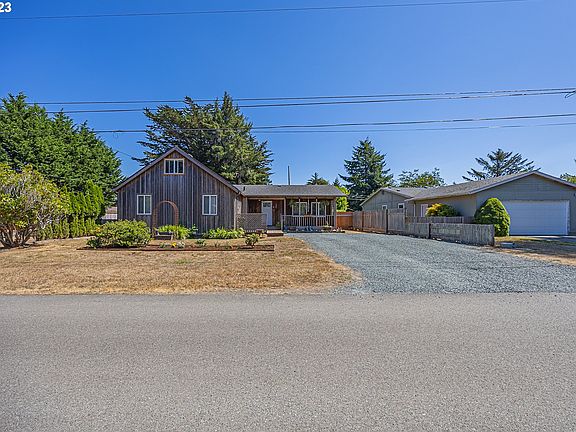 Charming 3 bed 2 bath home on a quiet dead end street. Located on the warmer side of Bandon, this home has been completely remodeled. All new appliances, kitchen cabinets and flooring. New ductless mini split with heating and cooling plus new pellet stove and double paned windows . Fenced backyard has shed for storage and covered patio area. Master bedroom and guest bathroom are located downstairs with 2 additional rooms upstairs. Easy access to all of Bandon's amenities.