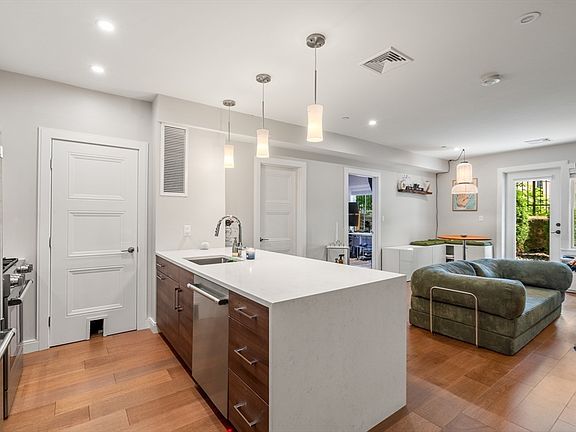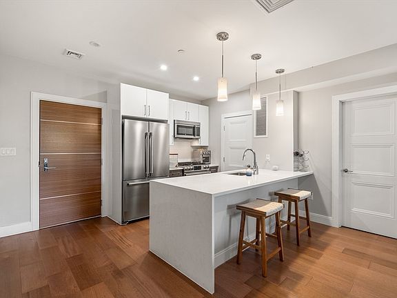THIS STUNNING NEW CONSTRUCTION 2023 CONDOMINIUM OFFERS A CONTEMPORARY DESIGN WITH HIGH END FINISHES. THE UNIT FEATURES TWO BEDROOMS WITH 2 DESIGNER BATHROOMS, PERFECT FOR THOSE SEEKING A MODERN AND COMFORTABLE LIVING SPACE. LARGE PRIMARY BEDROOM WITH OVERSIZED EN-SUITE BATH. THE APPROXIMATELY 983 SQURE FEET OF LIVING SPACE INCLUDES A PRIVATE PATIO, PROVIDING A SERENE OUTDOOR SPACE TO RELAX AND UNWIND. THE CONTEMPORARY GAS KITCHEN, OPENS TO THE LIVING ROOM, WHICH OVERLOOKS THE PRIVATE PATIO, CREATING A SEAMLESS INDOOR/OUTDOOR LIVING EXPERIENCE. THE PROPERTY ALSO INCLUDES A GARAGE PARKING SPACE WITH AN EV LEVEL TWO CAR CHARGER AT PARKING SPACE 28, CONVENIENT FOR ELECTRIC VEHICLE OWNERS. THE BUILDING IS EQUIPPED WITH AN ELEVATOR, PROVIDING EASY ACCESS TO THE UNIT. RESIDENTS CAN ENJOY THE BUILDING AMENITIES, INCLUDING AN OWNERS LOUNGE, FITNESS ROOM & LARGE COMMON PATIO. THE BUILDING IS CONVENIENTLY LOCATED ACROSS FROM THE MBTA TRAIN STATION TO BOSTON, MAKING IT IDEAL FOR COMMUTERS