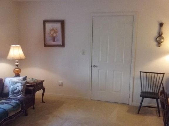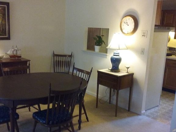 Whispering Pines! The most secluded location in a much sought after condominium community. First time available since 1987. End unit in the very last building in the complex. Very private. Balcony over looks woods not the back of other units. Clean painted garage with custom built cabinets. All appliances included. New heat pump roughly 3 years old. New sliding door. Well maintained, about as original as it gets. Short walk to stores and bike trail.
