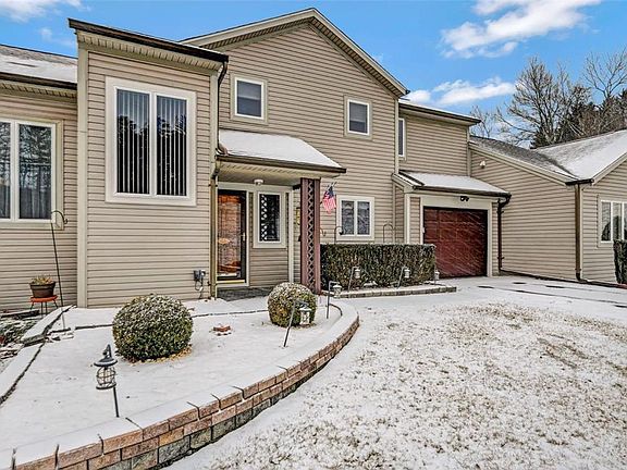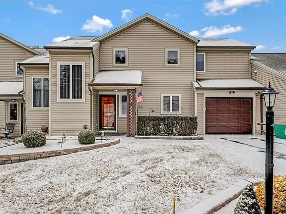 55+ Living at its absolute best! From the moment you walk into this beautiful townhouse, you can't help but fall in love! Entry foyer leads to a vaulted LR w/ propane fireplace. Open Kitchen/Dining Area concept. Versatile Four season sun room for Reading / TV room, or just a place to relax & watch the snow fall. Kitchen has a large peninsula & all appliances remain. Upstairs you will find two bedrooms. The Primary BR is spacious & has an en-suite bathroom w/ walk in shower. Hall bath has been refreshed & is perfect for your overnight guests! This home has been impeccably maintained. Newer HVAC, flooring, painting, etc. Outside enjoy the deck w/ retractable awning overlooks the lake. Gorgeous setting! 1 car garage w/ lovely landscaping. Short walk to pool & Clubhouse. Reasonable HOA fees.