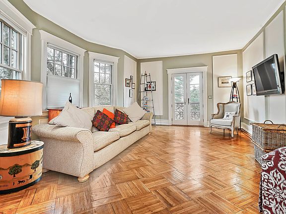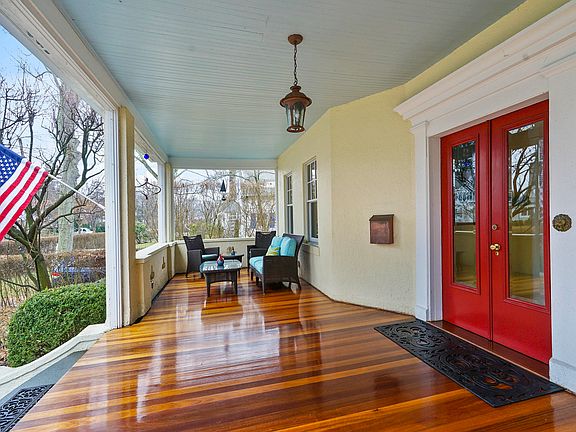 From the high location with distant back views across Pelham and evening sunsets to the soaring ceilings throughout, this Pelham Manor Victorian impresses and conveys a sense of loftiness as soon as stepping up to the broad front porch and entering through the wide, double-door entry. A broad and deep foyer opens to dining room and living room with sunny bay window and french doors and balcony. Family room with fireplace connects to renovated kitchen with adjoining powder room, french door to deck and patio, custom-made "Crown Point" cabinets with milk-paint finish, Vermont slate countertops, authentic linoleum floor and high-end appliances. Front to rear master bedroom with bay window and en suite bath, two further bedrooms and hall bath on second floor plus third floor cathedral ceiling bedroom with full bath. Herringbone, parquet floors and all new custom Pella windows with original restored moldings throughout. Partially-finished basement with mudroom, exercise room, play area, endless storage and full-sized, one-car garage. Beautifully-landscaped with deep and private back yard. ocated on one of the most vibrant neighborhood streets in Pelham, with friendly neighbors and an annual block party and within walking distance of train station and all of Pelham's award-winning schools. More about Pelham at www.PelhamLife.com.
