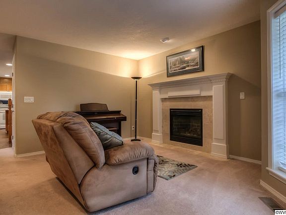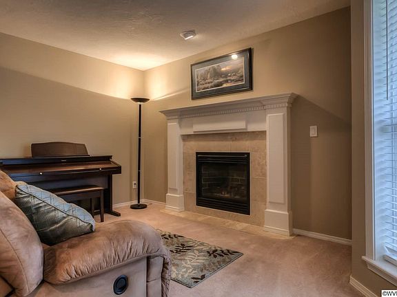 Beautiful home has newly tiled kitchen, gas fireplace, AC, central vacuum system, water softener, 8x10 matching shed, sprinkler system, garage shelving system, 24' round above ground doughboy swimming pool