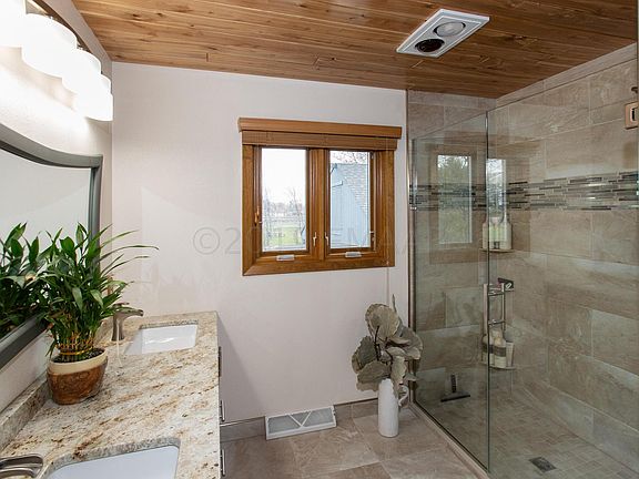 Rare one of a kind beautifully updated custom home & heated shop in a small town..close to large city! Comfort at its finest. Surround yourself with the warm wood tones and let the sunshine in from many south facing windows. Updates includes birch hardwood floors, kitchen & bathroom cabinets with granite counter tops, custom tile shower, triple pane Pella windows with roll screens. Enjoy entertaining in your beautiful backyard surrounded by perennial flower gardens. The 22 X 22 heated shop with overhead door is a great place for the big projects! Garage is 22 X 26 with loft. Property backs to a park. Two block from new elementary school. This is truly a small town treasure!