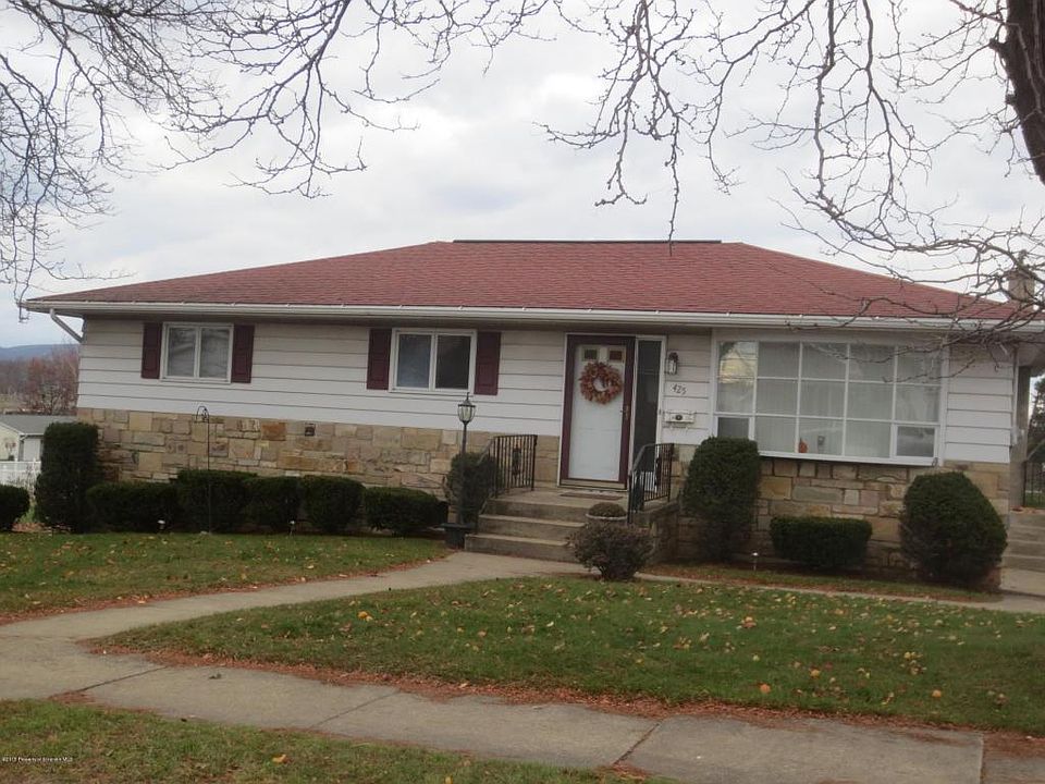 DUNMORE - Large yard. Nice view. 3 br, 2 bath ranch. Walk out from the LL Family Rm. Office or BR in LL. Gas HW heat.(Dishwasher does not work.)