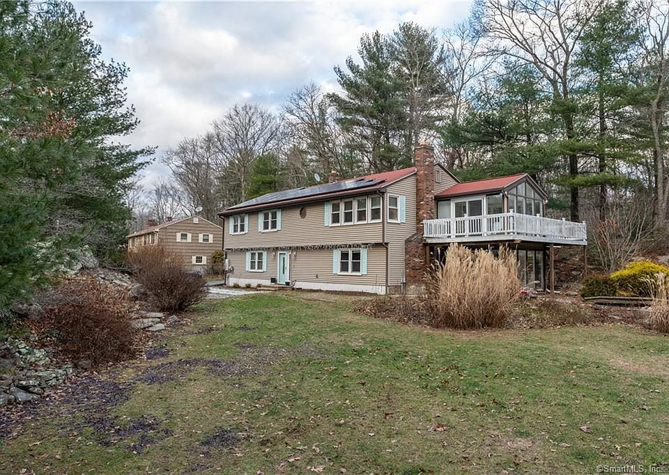 Now available in the Guilford Lakes area, this Hi-ranch sits on a sprawling 1.83-acre parcel, blending privacy and natural beauty on park like grounds. Filled with natural light, the interior has an open concept and thoughtful layout that emits warmth and comfort. A spacious living room opens graciously into a charming dining area with a picturesque bay window and well-appointed kitchen with quartz countertops. Just off the dining area is an inviting four-season sunroom, a space of relaxation and year-round enjoyment (or home office!). Sliding doors lead to an expansive wraparound deck, perfect for alfresco gatherings amidst nature's splendor. Additionally, the main level consists of a lux primary suite featuring a generous walk-in closet and a full bath, as well as two additional bedrooms and another full bath. In the fully finished, above-ground lower level, discover a bright and sizable space offering versatile possibilities. An additional full bath complements a 4th bedroom with a wood-burning fireplace. This level is permitted as an accessory apartment. Sliding doors open to a patio, merging indoor and outdoor living. Completing this exceptional residence is an attached two-car garage and ample storage throughout, offering practicality alongside its undeniable charm. Well maintained and thoughtfully designed, this home epitomizes the allure of tranquil living with easy access to nature's embrace. A must-see for those seeking serenity and comfort in Guilford.
