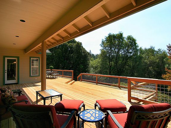 Elegant Pacific Northwest Style single story home on 5 tree studded acres provides peace & privacy. 2,885sf residence offers 3 bedrooms, 2.5 baths, entertainer's kitchen with dining area, wood beam vaulted ceilings, floor to ceiling river rock fireplace hearth in great room. Expansive brand new 2 level deck. Generous master suite with walk in closet, sitting room with built ins & spacious bath with double sinks, jetted tub & walk in shower. Newly sealed driveway, 3 car garage, RV & Boat parking.