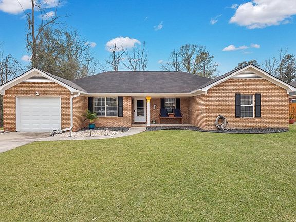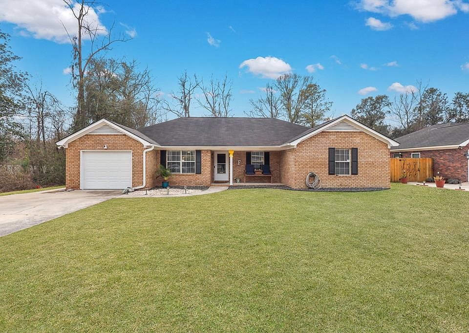 Welcome to your new home! This meticulously kept 4-bed, 2-bath all-brick ranch, spanning 1845 sq ft, offers a harmonious blend of comfort and style. The inviting yet spacious living room features a wood fireplace, setting a cozy tone. The well-equipped kitchen boasts ample counter space with bar and breakfast area, while plentiful storage throughout keeps spaces clutter-free. The spacious master bedroom is a retreat, with a private ensuite bath. Three additional versatile bedrooms offer flexibility for family, guests, or a home office. Step into the fenced backyard, backing up to serene trees, providing privacy and a picturesque backdrop complete with an extended patio and firepit! Located in a prime spot just minutes to Fort Stewart, schools, shopping, and restaurants, this residence offers both convenience and community with no HOA. Don't miss the chance to call this beautifully maintained ranch home yours – schedule a viewing today!