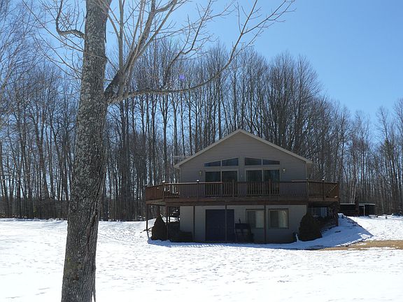 Enjoy total privacy while being close to town from this well maintained home on 20 acres. Offering main floor living with a ton of natural light, a wraparound deck with wonderful country views, an open kitchen and living area, main floor bedrooms and a full walkout lower level with a wood stove for efficient alternative heat. The 40'x64' pole barn has a 3 car insulated garage in the front, doors on both ends for easy access and lofts for additional storage. Access Burt Lake from the public boat launch just a few miles away or hop on the numerous recreation trails all right from the front door.