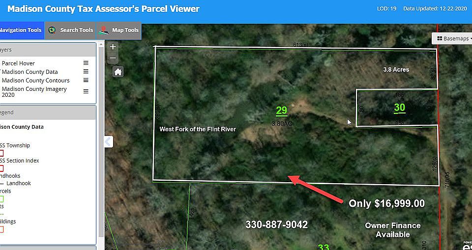 A Steal at only $16,999.00 0 Bobo Section Rd, Hazel Green AL This 3.8 Acre property is conveniently located off Highway 231 This property is perfect for fishing, camping, storage or doing whatever you want. The zoning is unrestricted!! Features: West Fork of the Flint River EZ access to Huntsville No Zoning Restrictions! Taxes are only 190.95 per year Landlocked CHEAP CHEAP CHEAP!!! Do what you want – When you Want!!!