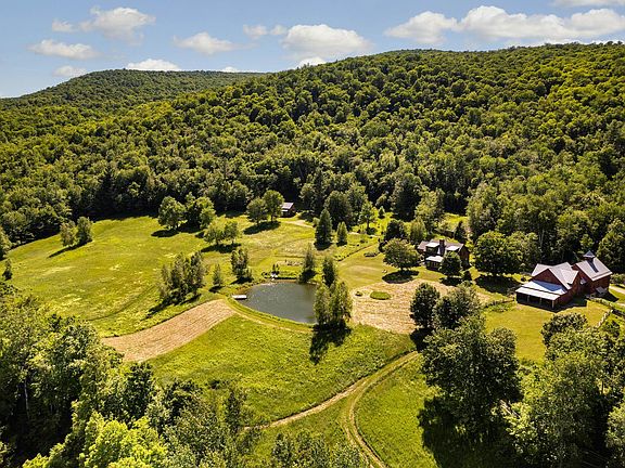 Nestled in the Green Mountains sits this idyllic property that perfectly combines rustic simplicity with undeniable charm. Surrounded by big mountain views this spectacular property sits on 141 acres of privacy. Bordered by the Huntington River with rolling pastures, watering hole, woodlands with walking trails and lots of wildlife, this is your Vermont getaway at its finest. Constructed in 2003 the Post and Beam custom designed home features 3 bedrooms, 2.5 baths, a large studio on the main level overlooking the pond with breathtaking views. The living area is open and ever so comfortable. A cook’s kitchen with Glenwood cook stove, a walk-in pantry with wall oven, handrails throughout are artisan made and add that special touch. Perennial gardens encircle the exterior. The barn or Movement Studio is a work of art itself with 20’ vaulted ceiling, this space is multipurpose for use as a yoga retreat or music studio. Bedrooms for guests/ family, a full finished lower level with kitchenette, 2 bedrooms and full bath. For the horse lovers there are 5 stalls and a tack room, a spacious hayloft. The Guest cottage is perfectly sited just up the road from the main house, enjoy morning coffee on the front porch listening to nature and taking in views. With one-bedroom, full bath, loft for seeping and a large open kitchen/living room, your guests may never leave! Don’t forget the outdoor sauna! Outbuildings include a 3-car garage, workshop and shed. A level of detail not often found.