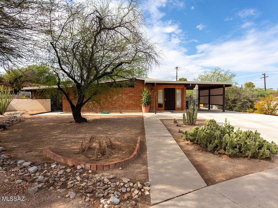 This charming 3-bed, 2-bath, Mid-Century home has an open floor plan, vaulted ceilings and clerestory windows that provide an abundance of natural light. The large Arizona room serves up extra space to relax, watch sports, or shoot a game of pool. The backyard is an oasis with a majestic Mesquite tree that produces cool shade & is surrounded by lush, irrigated landscaping, low maintenance turf, a patio with room to grill and dine, and a cozy chiminea. It is close to many amenities such as medical, shopping, restaurants, entertainment, and a public, 18-hole golf course. Pool Table & EV Charger convey with sale.