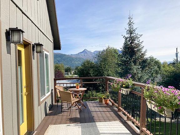 Clean, cozy multi-level home on a downtown scenic lot. This fully furnished downtown gem has abundant light coming through large windows facing S/SW. Nestled on Bailey Hill, the windows provide magnificent views of Lazy Mountain, Matanuska Peak, and Pioneer Peak during all seasons. Large trees and fresh berries surround the home providing privacy and a sense of seclusion, yet within walking distance to downtown Palmer attractions and the great trail systems. This well thought out house plan provides an excellent flow with an open floor plan of living and private suites. Preferred 3-6month lease. More photos available upon request. Call today! Private parking on primeses; pets welcome with approval; NO smoking of any type on premises; treat this home as it was your own- it is a rare gem in downtown Palmer.
