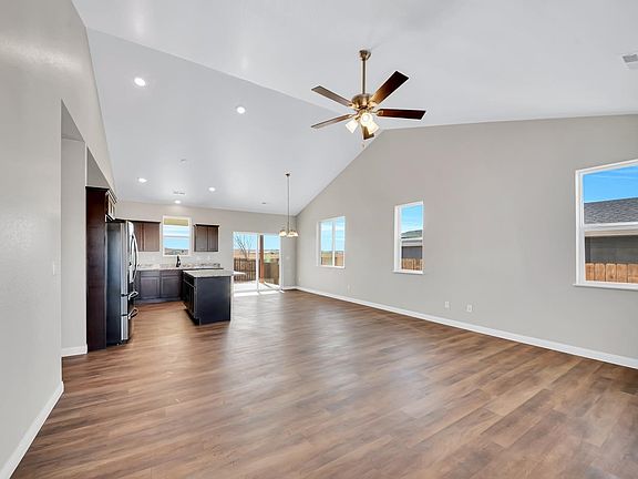 Location…Layout…Design…Quality – this brand new, one level home has it All! Imagine enjoying the day on your cozy covered front or covered back porch in this peaceful neighborhood. Upon entering you will feel the quality and see the details including the 9’ sidewalls, vaulted ceiling, large windows making the home light & bright, the sliding door leading fenced yard, the open floor plan, spacious kitchen with dark cabinets, granite countertops, tons of storage, high-end LG Thin Q Black Stainless refrigerator, gas range/oven, sleek microwave and dishwasher with a walk in pantry nearby and tasteful plank flooring. There’s more…off the spotless garage, with NO step entry, there’s a mudroom/laundry with cabinets, sink 2/ granite top, a hall closet, 2 secondary bedrooms, large bath with granite top & the spacious primary suite with a large bath, double sinks, decorative mirrors and a HUGE walk-in closet. Move in ready!