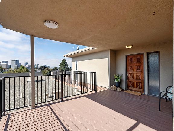 Penthouse surrounded in stunning Bay Area Views including the Bay Bridge, and Golden Gate. 3BD/2BA with private outdoor space and wrap around deck. Fresh carpet, interior paint, newly resurfaced kitchen cabinets, and a wood burning fireplace. This community features a pool, off-street parking with EV charging station at parking spot, additional storage and a communal laundry room downstairs as well as a more exclusive washer and dryer on the 4th floor with the penthouse. Located in Adam's Point near Lake Merritt and Whole Foods. EZ commute location. Must see to believe!
