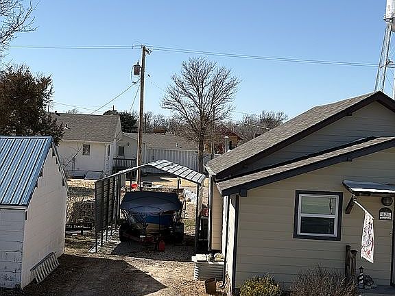 COASTAL FARMHOUSE HOME IN QUINTER KANSAS Welcome to this stunning 3-bedroom, 2-1/2 bath home in Quinter, Kansas. This 1150 square foot home was totally renovated in 2017. The house has vaulted ceilings that showcase its beauty as you walk in the front door. The great room meets you with soaring knotty pine wood ceilings and striking 8” solid knotty pine beams from Colorado. It has beautiful bamboo flooring throughout the main level. Located in a quiet neighborhood, this home boasts an open floor plan on the main level with lots of natural light. The living room is right off the main entry with shiplap walls that were locally sourced from a 100-year-old barn and white-washed. This wood is also used in a recessed area for sitting. The fully equipped Thomasville kitchen includes modern appliances; refrigerator, gas stove, and dishwasher, plenty of storage, and a built-in dining table. The kitchen countertops and dining table are stunning; hand poured concrete and blue glass embedded into the surface, which has a high luster of epoxy for the finish. The utility area is right off the back of the kitchen and includes a front load washer and dryer. There is a cute ½ bath right off the dining area that includes a charming beach scene mural. The master bedroom boasts a sliding antique barn door entry, generous clothes closet, plus another walk-through closet that leads into the gorgeous spa-like master bathroom. This ceramic marble tile bathroom boasts a walk-in shower, huge soaking tub, and double sink with lots of storage. The finished basement has two bedrooms with closets, fully equipped with escape windows. There is a full bathroom with shower in the basement. Plus a charming kitchenette, which is currently being used to make wine. Oh, the possibilities! There is also an ample storage room with shelves in the basement. At the back of the home, if you are an avid gardener, don’t forget the 16’ by 8’ greenhouse attached to the house for all your spring plantings. There is also a wonderful 50’ x 20’ fenced-in garden area, with plenty of asparagus to go around! The back porch also has a nice sitting area, big enough for a patio table and chairs, and even a porch swing. There is a 50’ by 20’ one-car garage (entrance to the alley) and shop with a loft that can store ample supplies. The shop is the perfect man-cave or workshop; and includes a wood burning double-barrel stove and two air conditioners. To the south of the house, there is a car port with plenty of space to also park an RV and/or boat. This house will be available for move-in middle to end of May. We would be happy to accept a deposit to hold this home for you! To schedule a showing today, call 785-657-1302 to speak with the owners. Hurry, this home will go quickly!