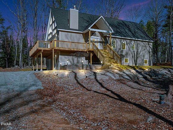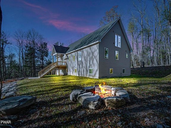 EXPERIENCE LUXURIOUS PRIVATE LIVING IN THIS EXCEPTIONAL NEW CONSTRUCTION GRAND CHALET HOME WITH 5 BEDS, 4 BATHS & EXTENSIVE MODERN AMENITIES! Divulge into luxury in this newly constructed home by a quality, custom builders. 3 levels exude modern elegance with a rustic mountain design, offering a crisp & clean aesthetic that defines contemporary sophistication & country chic. Boasting 3 beds & 2 baths on the main level, this home provides the perfect blend of functionality & style. Enjoy high efficiency forced hot air & full central AC. You're greeted by 20 foot cathedral ceilings & astonishing living spaces flooded with natural light, thanks to the expansive floor to ceiling windows that seamlessly integrate the indoors with outdoors. Step onto your exceptional wrap around deck that serves as additional space to enjoy. An open floor plan connects the living, dining & kitchen areas, creating a harmonious flow. A magnificent all natural wood burning stone fireplace serves as a focal point adding warmth & charm. Find amazing pine wood details that grace the interior adding mountain flavor to this breathtaking escape. Venture upstairs to discover an inviting loft space, featuring a generously sized bedroom, bath & balcony that offers panoramic views of the country surroundings. The lower level of this home is a haven of entertainment, with a completely finished rec room that promises hours of enjoyment. Practicality meets innovation in the garage, equipped with an electric vehicle charging station for eco-conscious homeowners. A whole house generator ensures peace of mind, providing a reliable power source. This home is a true testament to the marriage of top of the line finishes, modern amenities & thoughtful design. Located only minutes from Narrowsburg NY, the Upper Delaware region & 20 minutes to historic downtown Honesdale. Experience contemporary living in this extraordinary property where every detail has been crafted to offer unparalleled comfort & style.