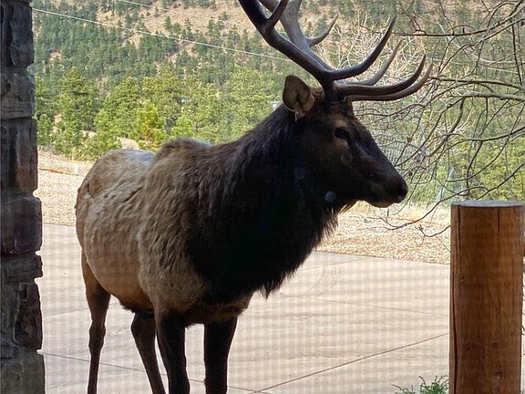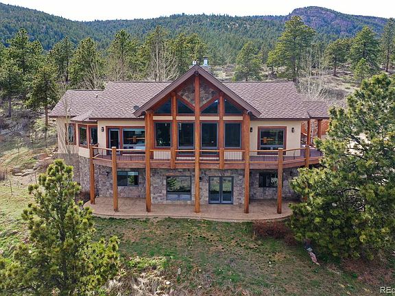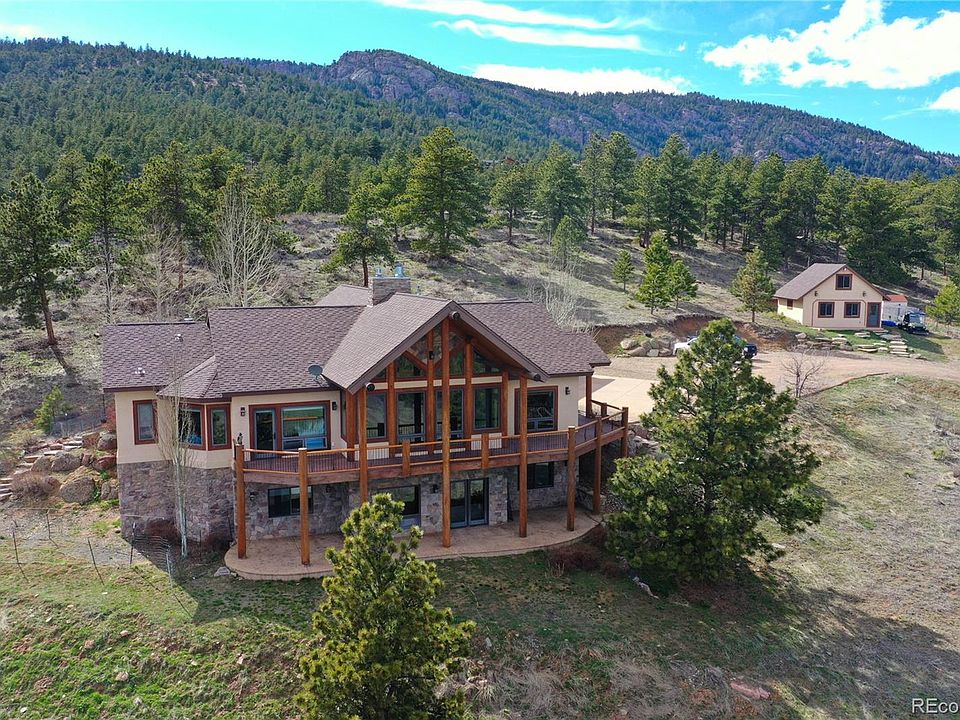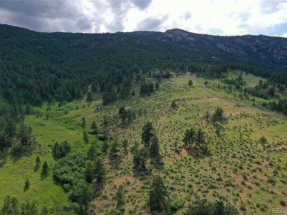 Stunning custom log and timber home situated on 35 acres bordering National Forest and Pole Hill. This property is the ideal mix of mountain living with convenient city access. A separate guest house or workshop accompanies the home, all of this sitting behind private gated access in one of the most desirable mountain communities, just west of Loveland. You can see this log work artistically highlighted throughout the home. Specialty slate tile compliments the downstairs bathroom, kitchen, and dining area; while the master bedroom, office, and great room feature hand scraped hickory floors. The finishes on this house are truly spectacular. 35 acres bordering National Forest gives you the opportunity to hunt, hike, and recreate right in your own backyard. Rolling fields of native grasses, wildflowers, pine trees, and aspens provide breathtaking scenery that capture the essence of the Rocky Mountains. A seasonal creek runs through the property and is great for attracting wildlife.