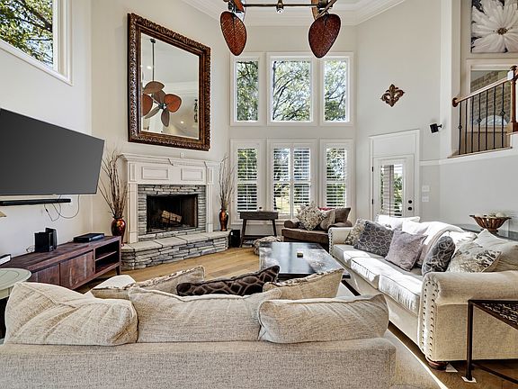 Golf course living at its best! Charming brick with vaulted ceilings, wainscoting, hardwoods and lots of windows for natural light. Spacious gourmet kitchen with stainless steel appliances opens into a two story family room with stone fireplace. Formal living and dining adjacent with a private office. Main-level primary offers back patio access for coffee in the mornings. Three upper level bedrooms, large bonus room with skylights and Romeo & Juliet balcony. Backyard is ideal for entertaining.