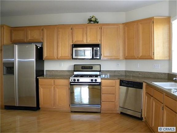 Highly upgraded 3 bedroom, 2 1/2 bath townhouse in Northwood Pointe close to Canyonview Elementary & Northwood High Schools. This floorplan has all 3 bedrooms upstairs. Maple floors downstairs, good quality carpet upstairs. Newer paint throughout. Plantation shutters in most every room. Living room has fireplace & TV niche. Dining area overlooks the extra-large grassy yard. Beautiful gourmet kitchen w/maple cabinets, granite countertops, stainless steel appliances. Master bedroom w/ mirrored closet doors & ceiling fan. Master bath w/double sinks, shower, tile floor. Bedroom 2 has double door entry, mirrored wardrobe. Inside laundry room is large. Oversized 2-car attached garage w/roll-up door. Refrigerator, washer, dryer included without warranty. End unit location in Greystone Villas, a gated community w/pool, basketball, playground. Enjoy Meadowood Association amenities including Meadowood Park. The property is within walking distance to all award winning schools -- Canyonview Elementary School, Sierra Vista Middle School, and Northwood High School. Rental price excludes all utilities (Water, Gas, Electricity, Internet, Cable, etc.). This is an investment property therefore long term tenant is preferred. One year minimum lease term and can be extended at the end of lease term.