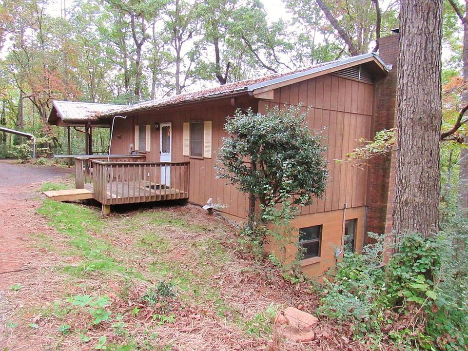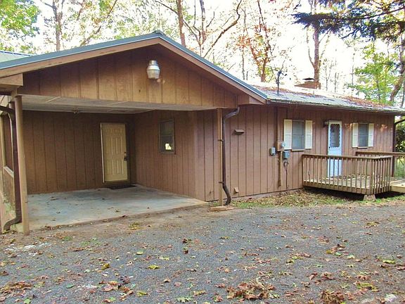 Great home in town that has Lots of living space, great for a family. In a nice neighborhood, near the greenway and town so has both high-speed internet and cell service! This home is solid, has been recently updated and ready to move in with a new metal roof, new laminate wood flooring almost throughout upstairs and new vinyl laminate flooring throughout downstairs, and new vanity in the bathroom. The main level boasts an open floor plan and has both a living room and family room, 2 bedrooms and a bath and a half. Walk out of the sliding glass doors onto the deck and take in nature with all of the trees surrounding the home. On the lower level is another family room with a brick wood burning fireplace, bedroom, full bath plus laundry room with sink. It has its own porch as well. Has easy access off of paved roads, and has an extra lot so it is private. Also has 2 carports one attached and one detached, plus a large storage shed. This makes a great year-round home.