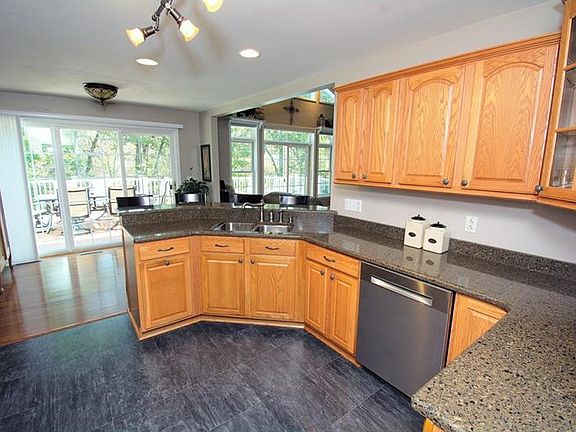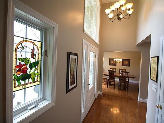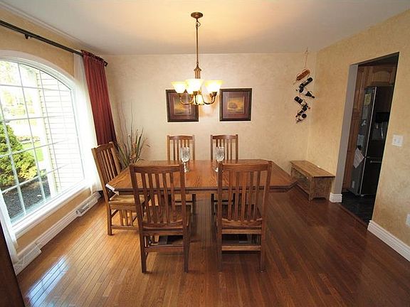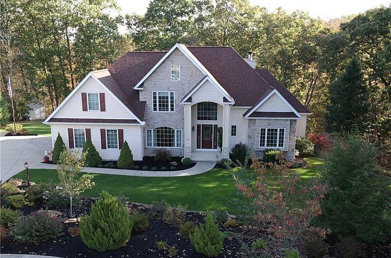 Nestled on a beautiful homesite is this custom built 4 bedrooms, 2.5 bath home designed with distinction and style. Situated on a stunning cul de sac location boasting 2+ acres of mature wooded privacy, this home will grasp your attention from the curb. The inviting 2 story foyer features a beautiful beveled door with sidelights, hardwood flooring and is flooded with natural sunlight. The formal dining room is highlighted with a large picture window, hardwood flooring and access to the chef's kitchen. With generous Quartz counter space, ample custom cabinetry, stainless steel appliances and casual counter top seating, this kitchen is perfect for every day meals and entertaining. Adjacent to the kitchen is the first floor laundry room and family entrance, which also provides exterior access to the back deck. Hardwood flooring graces the open layout of the main level and flows to the family room with a vaulted ceiling and a dramatic 2 story stone, wood burning fireplace as the focal point. Striking windows and access to the back deck provide stunning views of the private, wooded homesite. Enjoy nature on your expansive back deck. The first floor Owner's suite is sure to impress with a trey ceiling, large windows, hardwood floors, modern tones and a spa-like bath. Spacious and modern, this bright retreat style owner's bathroom features generous Quartz counter tops, custom cabinetry, custom tile flooring and custom tiled shower with glass door. The dramatic second level hall features a cat walk overlooking the family room and boasts beautiful views of nature. An expansive and bright guest bedroom is highlighted with a large picture window, generous storage and an en suite bathroom. The spacious hall bathroom features wainscoting, modern vanity and a tub/shower combo with entrances from the hall and guest bedroom. The second guest bedroom features ample storage, generous sunlight and neutral decor. The versatile bonus space, boasting beautiful skylights, can double as a third guest bedroom. The finished walk out lower level is an entertainers dream. The spacious home gym features rubber flooring and can accommodate all of your work out needs. A bright second family room is in the finished lower level and is highlighted with a custom wet bar, a game room area and a separate versatile room. After a long day, retreat to the back deck or lower patio, both offering tranquility and serenity.
