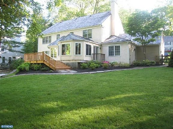 Wonderful 4 BD, 2.5 BA colonial in highly desirable (& rarely available) Radnor Twp. community of ~~~Round Hill.~~~ Eat-in kitchen w/breakfast bar & bright, oversized breakfast room. Formal dining rm., living rm. w/fireplace. Family rm. with fireplace plus bonus Sun Room. Office/Library w/wall of bookshelves & wet bar. Gorgeous, RENOVATED spa-like master bath with deep soaking tub & NEWER hall bathroom too! Large walk-in master closet w/custom organizers. Finished lower level rec room with built-ins, plus add'l finished room with several closets - ideal for 5th bedroom. Large unfin. storage room with ample space for future expansion. Walk-up, daylight access to rear yard. 2-car attached garage. Fresh paint, neutral d~~cor, new roof make this home ~~~move in ready.~~~ Spacious, open floor plan offers great flow for both formal & casual entertaining. Newer deck overlooks nicely landscaped rear yard. Quiet neighborhood near parks, schools, clubs, train & shops in Wayne. SELLERS WILL FILL IN POOL & LAY SOD FOR ADD'L LAWN