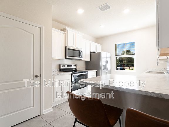 Discover your dream home in this like-new 2023 build! This move-in ready 3-bedroom, 2.5-bath home features tile throughout the first floor and new LVP flooring for a modern, clean look. The kitchen offers light countertops and cabinets, perfect for cooking and entertaining. Relax on the private patio with no rear neighbors. Pet lovers will enjoy the nearby dog park, and nature enthusiasts will love the scenic pond. Located in Oakleaf, you'll have access to top-rated schools, shopping, dining, a movie theater, pools, fitness center, and endless recreational amenities. Washer & Dryer Included (tenant responsible for repair/replacement).