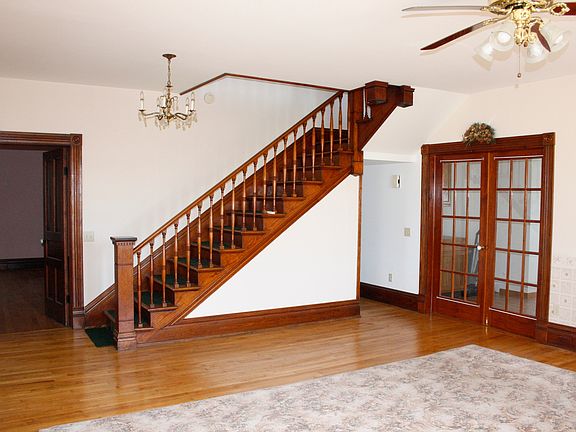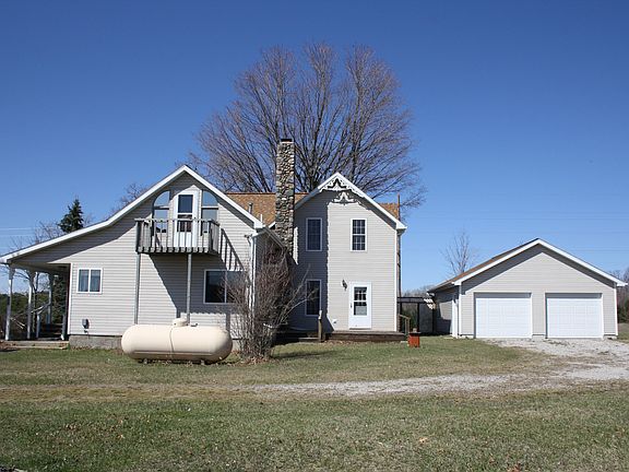 Turn of the Century, remodeled, farm house with spectacular views of farm country. Situated on a small hill overlooking the surrounding area for miles; this is country living at its finest! Home features an updated kitchen with a breakfast nook and formal dining area. You will find two sets of French style doors in the kitchen/dining area; one leading out to the deck and the another set opening up into the living room. The living room features windows on two walls along with a spindle staircase taking you up to the second floor family room, two bedrooms, and a possible fourth bedroom. Other features of this beautiful home include hardwood flooring throughout, a main floor bedroom, utility room, plenty of natural lighting, and an unfinished basement. Property is a great location for horses or a small hobby farm; with 5 acres and an additional 5 acres available next door. You will find Apple, Locust, Spruce, and Maple trees on the property along with lilac bushes and an asparagus patch. Schedule your showing now!