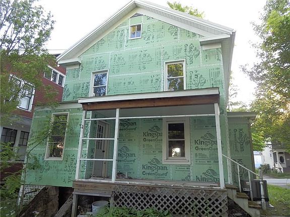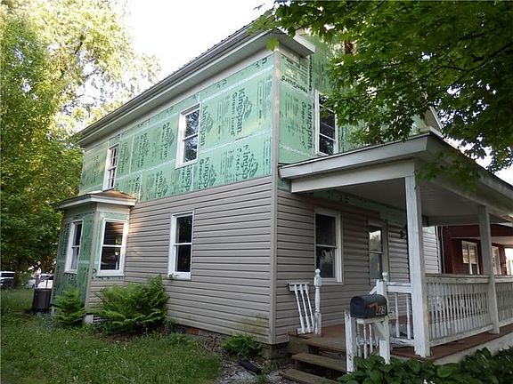Single family home with unfinished remodeling. Second bath framed on first floor but no plumbing. New furnace, central air, new electrical panel, some wiring. Well on it's way to be finished. Some siding material included, 1/2 sided now. Extra wire, ladder and some pex tubing. Being sold as is. Utilities are not on. Bath on second floor is gutted.