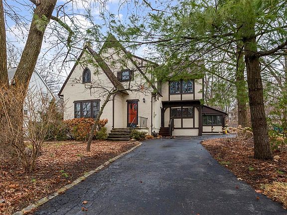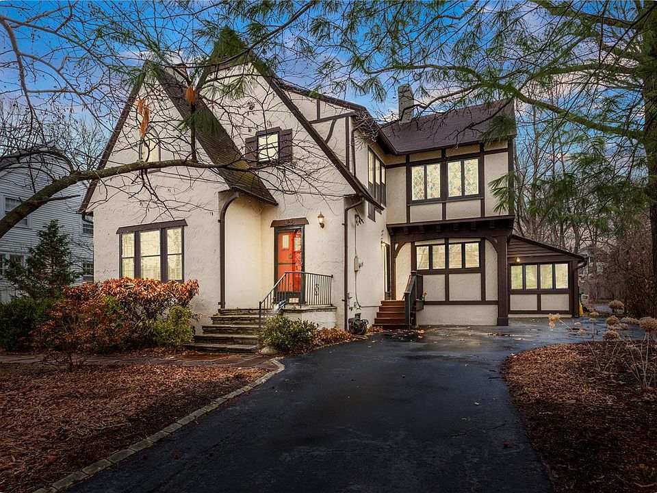 This 1920's Tudor is quietly nestled close to the cultivated flurry of downtown Webster & just a two block stroll to the NEW highly anticipated Union Bagel+Art of Entertaining+South Gore is on the Parade Route! When the sun light drenches the living room in the morning, you'll feel like you are in the Cotswolds, have a coffee, light the fireplace & enjoy your pretties on the custom bookshelves. The updated kitchen boasts quartz countertops, wood beams w/ brick supports & twin archways. Step down from the kitchen into the sunken family room w/ cathedral ceilings, skylights & a SAUNA, round the corner to a jetted tub & full bath. Finish your sauna & relax on your screened in private porch. Upstairs are 4 bedrooms, one being the Crown Jewel, one of the most magical rooms in Webster, w/ wooden beamed Cathedral ceiling, original iron chandelier, leaded inlay stained glass & brick wood-burning fireplace. Bonus: home to a street Pickleball tournament and get-togethers.