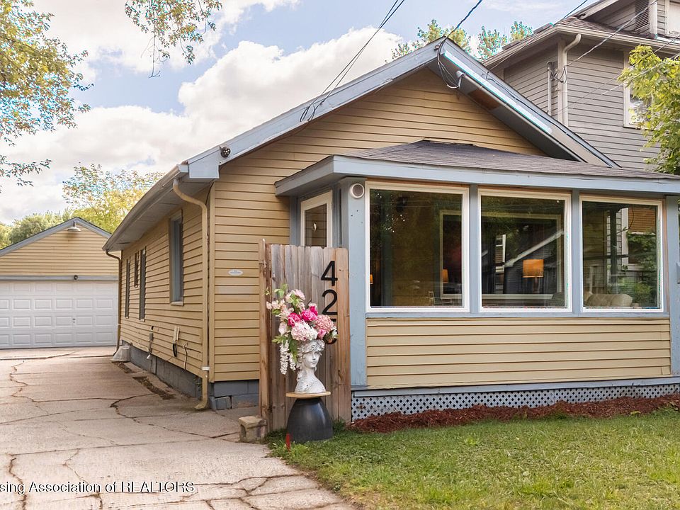 A House Whisperer is pleased to showcase a unique opportunity awaiting first-time home buyers, DIYers and investors with this charming ranch home on the Lansing Eastside Neighborhood: FENCED IN PRIVATE DOUBLE LOT WITH 4-CAR- 689 SF GARAGE -close to a local park. Sunny 3 seasons porch, generous living room opens to dining room and kitchen with cozy dining nook. House roof replaced in 2023 and mechanicals in 2017. Newer porch and kitchen nook windows . Price reflects the condition of the house. Why rent when you can own? Curtains are reserved but rods remain.